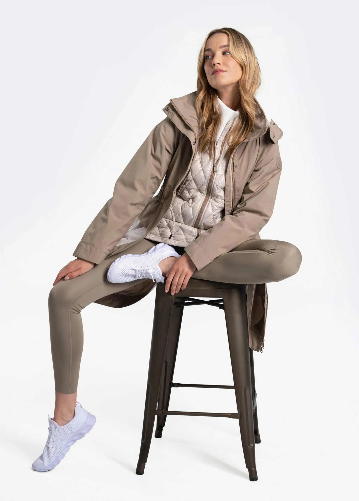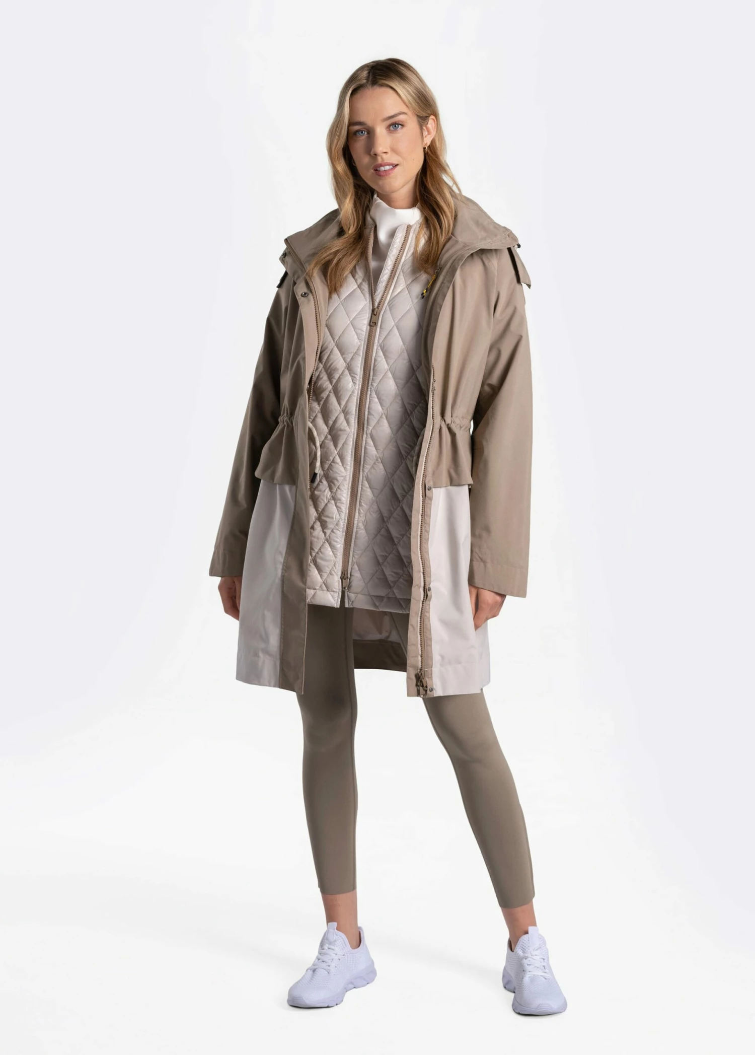The Aubrey Insulated Jacket is a seasonal must have. The three-in-one jacket is our most versatile piece with an outer fully seam sealed shell, quick-drying which is also breathable, waterproof and durable water repellent. The relaxed fit is constructed with an inner waist adjustment system, two way zipper and two-way centralized front zip plus removable/adjustable hood.