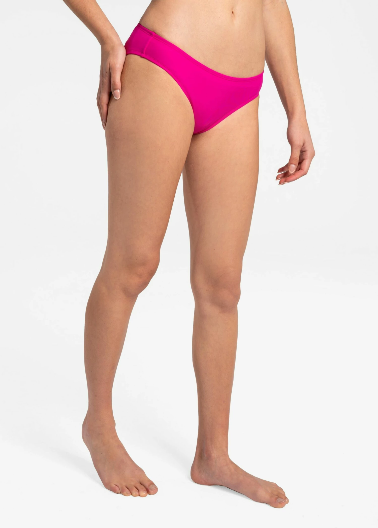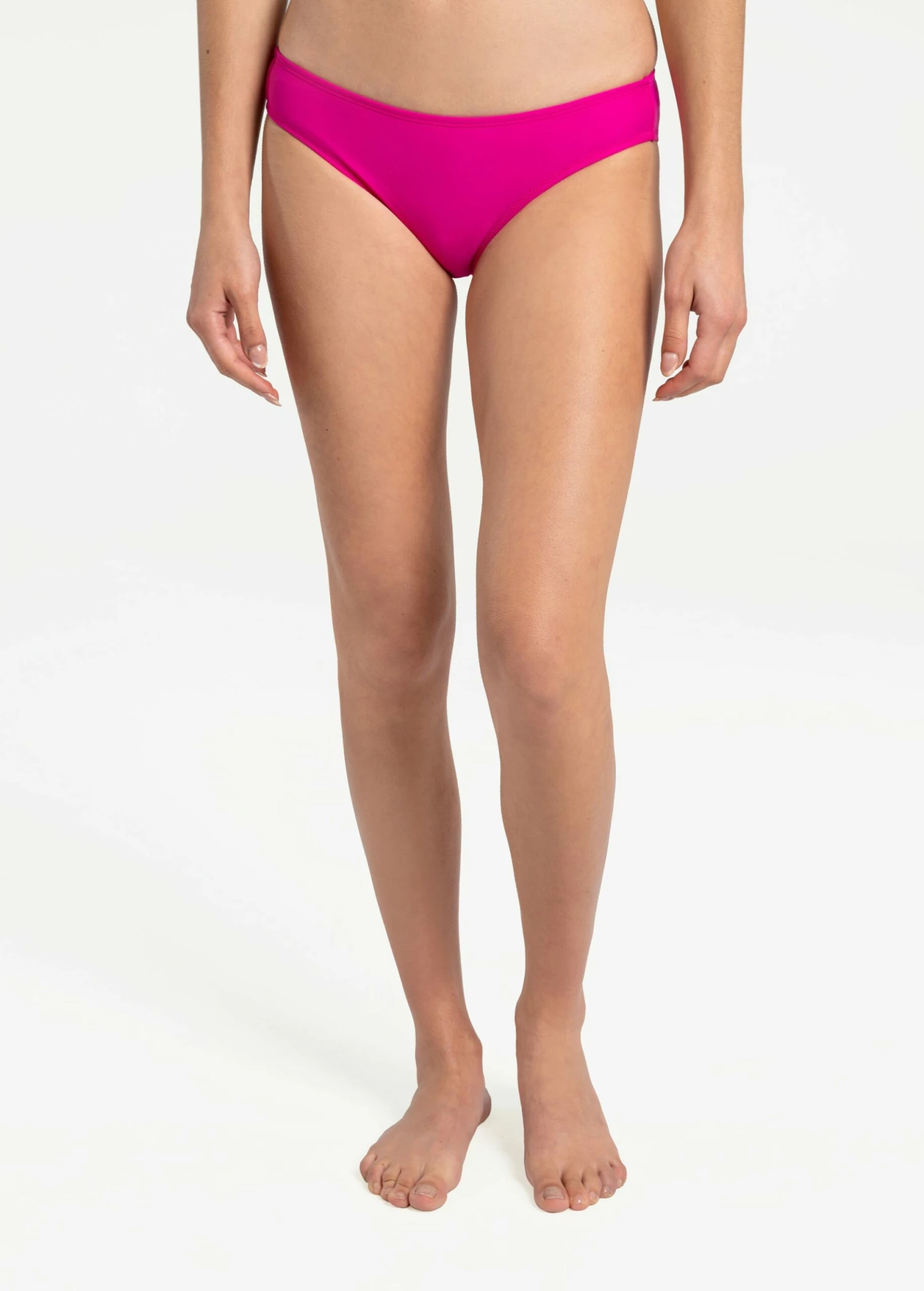 Which way to the beach? These silky soft, mid coverage swim bottoms have a midrise in the front and back and sit at your hips.