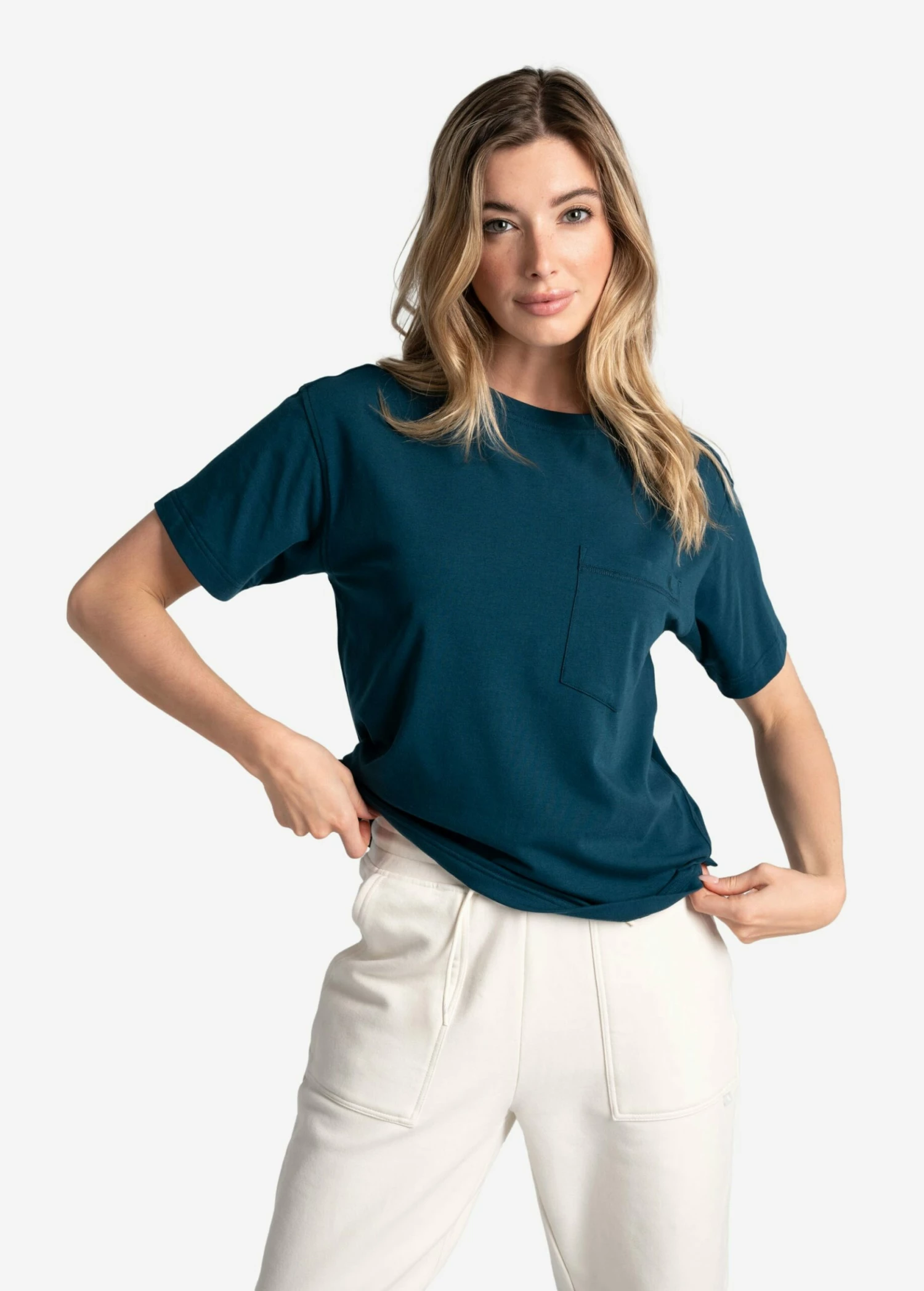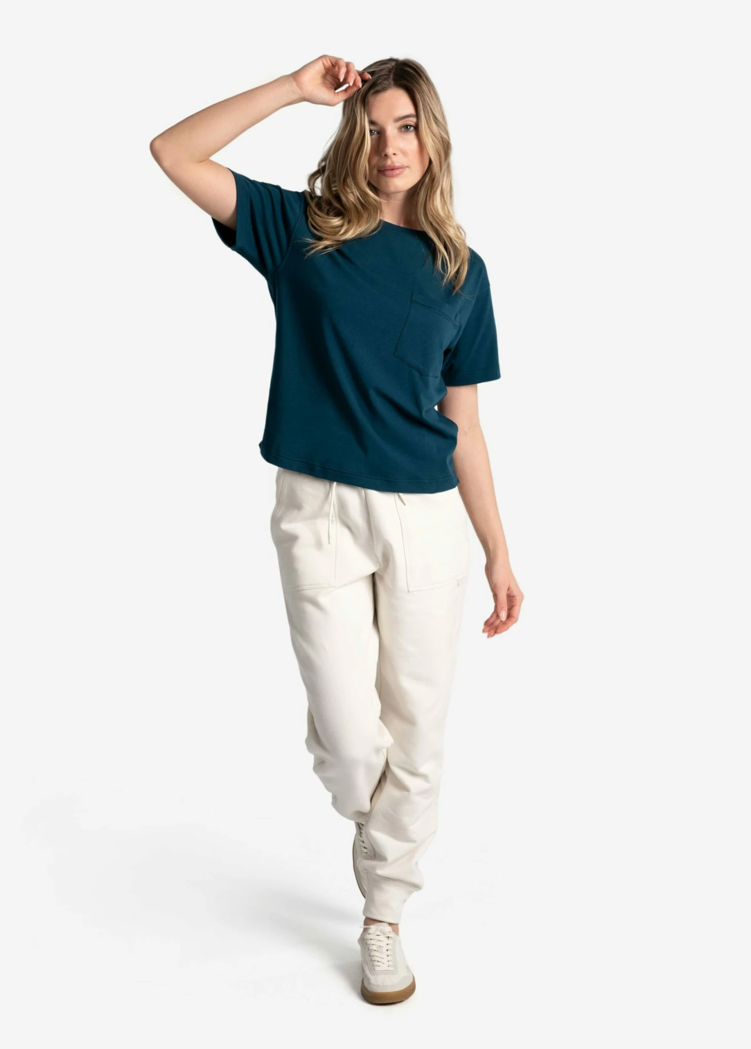 A t-shirt to reach for again and again. Made from lightweight recycled jersey, slip into this easy crew neck tee post-workout.