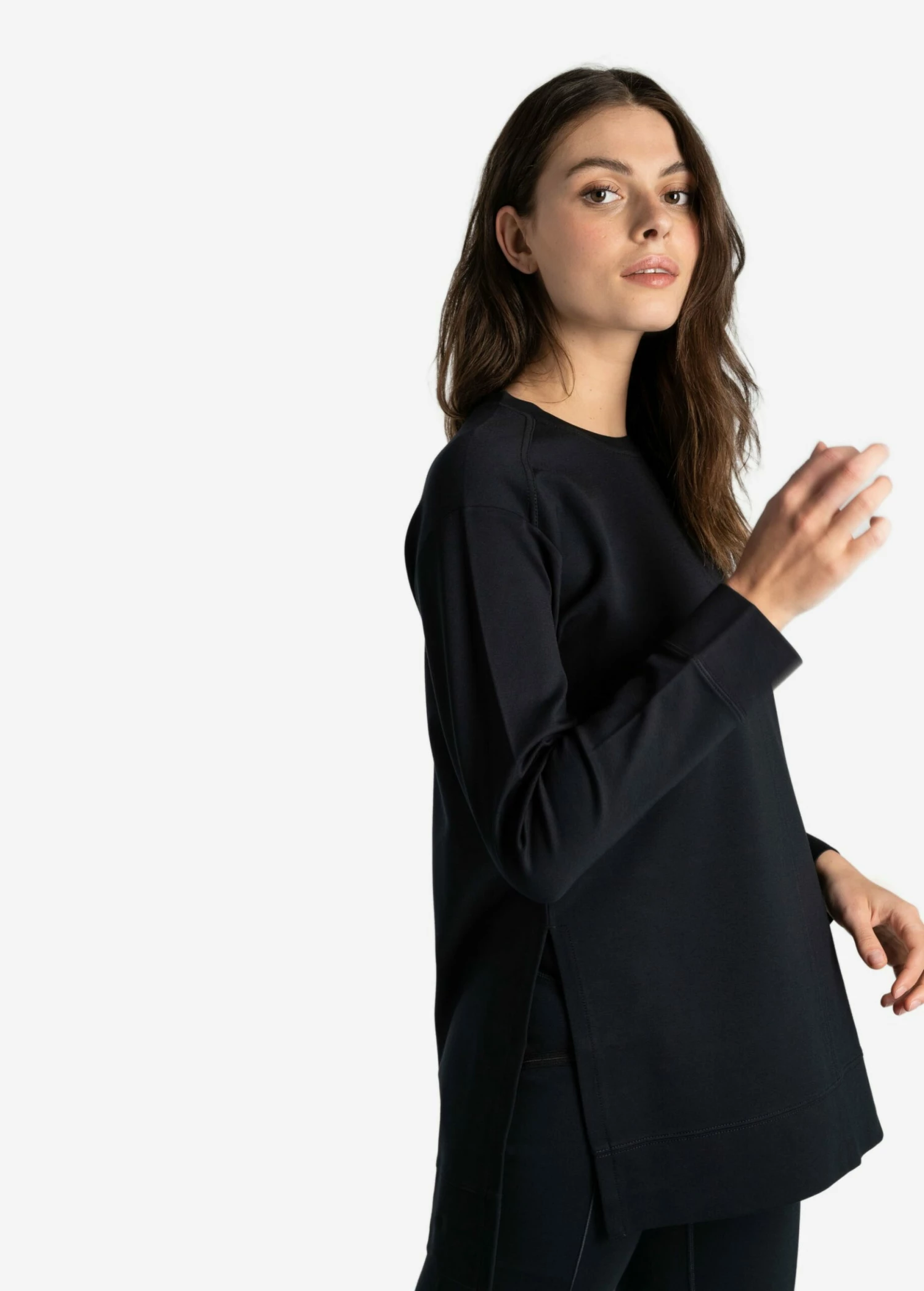 Stylistically simple, with endless options. This mid-length tunic gives you the coverage you crave, with a warm and cozy feel. Side slits allow for ease of movement while breathable fabric keeps you cool.