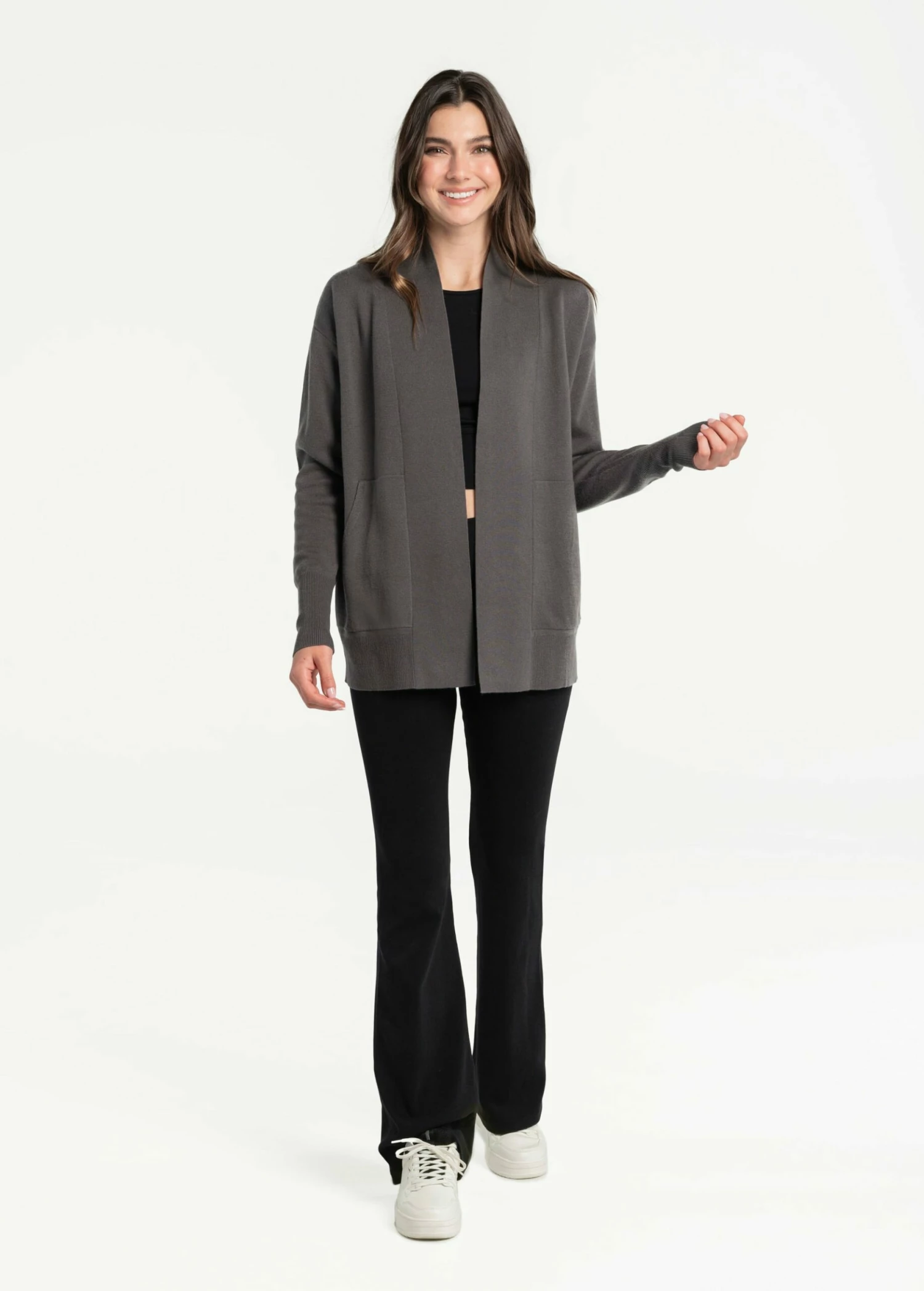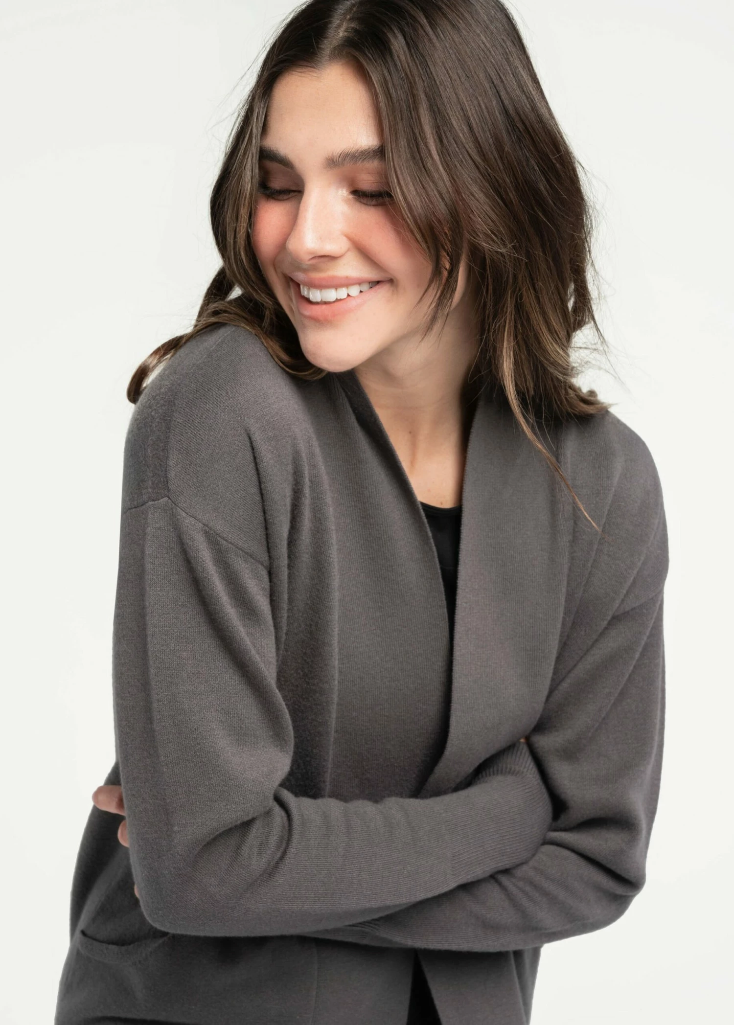 Perfect for sweater weather. Throw on this cozy knit cardigan wrap made from organic cotton on your workdays or quiet days.